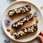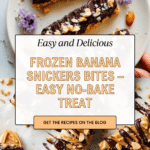 Delicious and easy-to-make frozen banana Snickers treats featuring layers of peanut butter, chopped peanuts, melted chocolate, and optional caramel drizzle. Perfect as a refreshing and indulgent snack or dessert, these bite-sized frozen delights combine the creamy sweetness of bananas with rich chocolate and nutty textures.