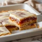 This classic Apple Slices recipe features a flaky, buttery crust layered generously with sweet apple dessert filling, topped with a smooth vanilla glaze. Perfect for a comforting dessert or a delightful treat, this dish combines the crunch of a perfectly baked pastry with luscious cinnamon-spiced apples, finished with a delicate glaze that adds just the right amount of sweetness.