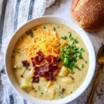 Keywords: Baked Potato Soup, creamy potato soup, cheddar cheese soup, comfort food, potato and bacon soup