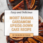 Keywords: banana cake, upside-down cake, cardamom cake, caramelized banana dessert, skillet cake, moist banana cake, easy banana dessert