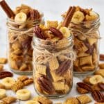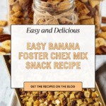 Banana Foster Chex Mix is a deliciously sweet and crunchy snack combining Honey Nut and Cinnamon Chex cereals, pecans, and dried banana chips, coated in a buttery brown sugar glaze flavored with cinnamon and extracts of banana and rum. This microwave-made mix is perfect for parties, snacking, or gifting.