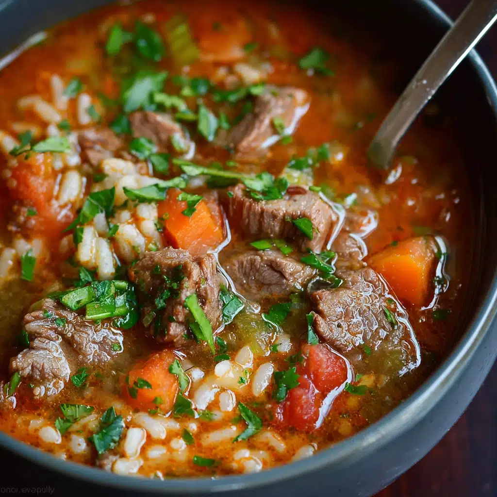 A hearty and comforting Beef Soup (Kharcho) recipe that’s perfect for a cozy meal. Tender beef stew meat, aromatic vegetables, and flavorful seasonings come together in a delicious broth with rice, fresh herbs, and a hint of lemon.