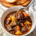 Store leftover stew in an airtight container in the refrigerator for up to 4 days. Reheat gently on the stovetop or in the microwave, adding a splash of broth if needed to loosen the gravy. This stew can also be frozen for up to 3 months—thaw overnight in the fridge before reheating.