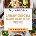 This black bean soup is a comforting, flavorful dish that’s perfect for any season. Rich with spices and a hint of smoky chipotle, it brings warmth and depth to your bowl. Whether served with fresh toppings or on its own, it’s a satisfying meal for vegetarians and meat-eaters alike.