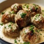 Store leftover meatballs and sauce in an airtight container in the refrigerator for up to 3 days. Reheat gently on the stovetop or in the microwave, stirring occasionally to maintain the creamy consistency.