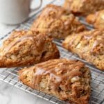 Store leftover scones in an airtight container at room temperature for up to 2 days. For longer storage, freeze unglazed scones in a sealed container for up to 1 month. Reheat in a warm oven before glazing to restore their fresh-baked texture and flavor.