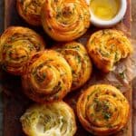 - Brush and serve: Once baked, remove the cruffins from the oven and brush them generously with the garlic butter glaze. Serve warm for best flavor and texture.