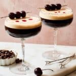 Keywords: Cherry Espresso Martini, espresso martini recipe, cherry cocktail, vodka espresso cocktail, Kahlúa drink, Luxardo cherries cocktail, shaken cocktail