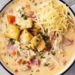Keywords: Chicken Cordon Bleu Soup, creamy chicken soup, ham and cheese soup, comfort food soup, easy soup recipe, rotisserie chicken soup