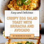 Keywords: crispy egg salad, pan-fried egg salad, spicy egg salad, sriracha egg salad, mozzarella egg salad, avocado toast, easy egg salad recipe