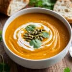 - Serve and garnish: Ladle the soup into bowls and garnish with chopped cilantro, roasted pumpkin seeds, and a swirl of coconut milk if you like. Serve alongside crusty bread for a complete meal experience.