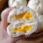 Custard buns, also known as milk yolk buns, are soft, fluffy steamed buns filled with a rich and creamy custard. They make a delightful treat perfect for breakfast or afternoon tea, blending the smooth sweetness of egg yolk custard with a tender dough.