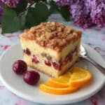 Keywords: sourdough coffee cake, double crumb coffee cake, sourdough dessert, nut crumble topping, berry coffee cake