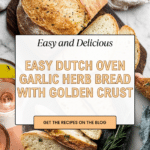 This Dutch Oven Garlic and Herb Bread is a fragrant, crusty loaf infused with fresh herbs, garlic, and Parmigiano-Reggiano cheese. Made using a combination of bread and all-purpose flour with an easy no-knead dough technique, it develops a perfect texture with a chewy crust and tender crumb. The bread is baked in a preheated Dutch oven for a professional bakery-quality finish right at home.