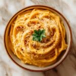 This Easy Creamy Pumpkin Alfredo Pasta is a cozy autumn twist on classic Alfredo. Featuring a luscious sauce made from pumpkin puree, heavy cream, butter, and parmesan cheese, it delivers a silky, flavorful pasta dish ready in under 30 minutes. Perfect for a comforting yet light meal, it’s an excellent way to add seasonal flair and sneak in pumpkin to a savory dinner.