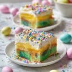 Keywords: Easter cake, poke cake, colorful cake, vanilla pudding cake, holiday dessert, easy cake recipe