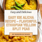Kik Alicha is a comforting Ethiopian yellow split pea stew that’s mild yet flavorful, perfect for a wholesome meal. Its gentle blend of turmeric, ginger, and garlic creates a warm, inviting dish that’s both nutritious and satisfying.