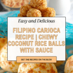 Filipino Carioca is a delicious traditional Filipino snack featuring chewy balls made from glutinous rice flour and sweetened shredded coconut, deep-fried to a golden perfection, and coated in a rich, thickened coconut caramel sauce. This treat offers a wonderful combination of textures and tropical flavors, perfect as a comforting sweet bite or dessert.