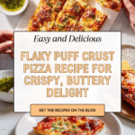 This Flaky Puff Crust Pizza features a buttery, laminated dough that creates a beautifully crisp and flaky crust, topped with a rich blend of pizza and Parmesan cheeses, a fresh tomato sauce, and finished with a flavorful garlic-basil oil drizzle. The multilayered dough technique gives the pizza a unique lightness and texture, making it a delightful homemade pizza experience.