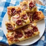 PrintFocaccia with Figs, Caramelized Onions, and Gorgonzola Recipe