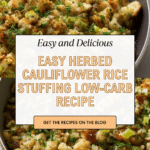 This herbed cauliflower rice stuffing offers a lighter, low-carb alternative to traditional stuffing without sacrificing flavor. It’s made with sautéed cauliflower rice, fresh herbs, and a touch of vegetable broth, creating a tender and savory side dish that pairs perfectly with your favorite meals.