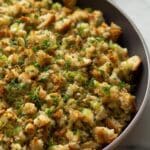 Store the stuffing in an airtight container in the refrigerator for up to 3 days. When reheating, warm it on the stove with a splash of broth to keep it moist and flavorful. Garnish with fresh herbs before serving for best results.