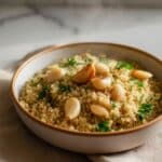 This Herbed Quinoa with Roasted Garlic is a light, flavorful side dish, perfect as a base for hearty main courses. The roasted garlic infuses the quinoa with a mellow, sweet depth, while fresh parsley adds a bright, fresh note. Simple to prepare and wholesome, it can be made ahead and stored for easy meal prep throughout the week.