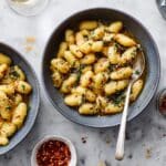 Keywords: homemade cavatelli, semolina pasta, garlic chili oil pasta, Italian pasta recipe, hand-rolled pasta, easy pasta sauce