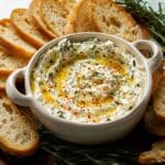 This dip pairs well with toasted baguette slices, crackers, tortilla chips, or fresh vegetable sticks like carrots and celery.
