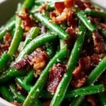 Store leftover green beans in an airtight container in the refrigerator for up to 3 days. Reheat gently in a skillet over low heat to maintain the glaze’s texture. Avoid microwaving as it can make the glaze sticky and the bacon chewy.