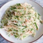 - Shred the Crab: Peel the imitation crab into thin strips by hand, ensuring they are easy to separate and uniform for an ideal texture in the salad.