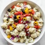 Keywords: marinated cauliflower salad, cauliflower salad, vegetarian salad, Mediterranean salad, healthy side dish, no-cook salad
