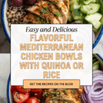 Mediterranean Chicken Bowls feature tender, marinated chicken served over a base of fluffy quinoa or brown rice, topped with fresh cucumbers, tomatoes, red onions, Kalamata olives, and crumbled feta cheese. This dish offers a delicious balance of protein, fiber, and healthy fats, bursting with vibrant Mediterranean flavors and a zesty lemon oregano dressing.