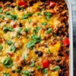 Keywords: Mexican casserole, spaghetti squash recipe, healthy casserole, ground turkey casserole, low-carb Mexican dinner