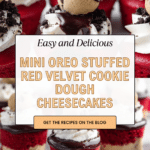 Mini Oreo Stuffed Red Velvet Cookie Dough Cheesecakes combine the indulgence of rich red velvet cheesecake with a chewy cookie dough crust and an Oreo surprise center, topped with silky chocolate ganache and whipped cream for an irresistible dessert experience.