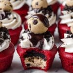 - Step 12: Serve and enjoy your mini Oreo stuffed red velvet cookie dough cheesecakes!