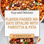 No-Date Ditalini is a vibrant and flavorful pasta dish packed with savory pancetta, tangy sun-dried tomatoes, and briny olives. This hearty one-pot meal combines bold Mediterranean ingredients for a comforting yet exciting dinner that comes together with ease.