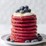 Delightfully vibrant and naturally sweet Pink Beet Pancakes made with cooked beets blended into a fluffy batter, perfect for a nutritious and colorful breakfast or brunch. These pancakes are dairy-free, mildly sweet, and pairs wonderfully with maple syrup, melted white chocolate, or fresh fruit.