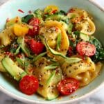 This Potsticker Salad is a vibrant, fresh dish featuring steamed or pan-fried vegan gyoza dumplings combined with heirloom tomatoes, cucumbers, scallions, and fresh basil. Tossed in a tangy tamari-balsamic dressing and garnished with toasted sesame seeds or crispy fried onions, this salad offers a perfect balance of savory, sweet, and spicy flavors. Ideal for a light lunch or a refreshing appetizer, it can be customized with additional fresh veggies and served with garlic chili sauce for extra heat.