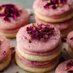 Delight in these elegant Raspberry Rose Cookies featuring buttery, tender cookies topped with a luscious raspberry rose-flavored frosting. Perfect for special occasions or as a charming homemade gift, these cookies blend the classic sweetness of sugar cookies with fragrant rose water and fresh raspberry puree for a floral fruity twist.
