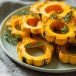 Keywords: delicata squash, roasted squash, healthy side dish, fall vegetables, easy vegetable recipe, oven roasted, thyme