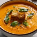 - Serve: Ladle the hot soup into bowls and garnish with fresh basil ribbons, croutons, and a drizzle of olive oil if desired. Serve warm with crusty bread for a hearty comforting meal.