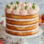 This Russian Peach Cake is a delightful layered dessert featuring light almond sponge cake, sweet peach preserves soaked in white wine, airy whipped cream, and a unique homemade peach-flavored zefir marshmallow topping. The combination of tender cake layers, fruity filling, and fluffy decorations creates an elegant, flavorful cake perfect for special occasions or sophisticated gatherings.