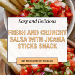 This refreshing and healthy snack features a vibrant homemade salsa paired with crisp, crunchy jicama sticks. The salsa bursts with fresh tomatoes, zesty lime, and a hint of jalapeño heat, balanced by the mild, slightly sweet crunch of jicama. A perfect light and fiber-rich midday pick-me-up or appetizer alternative to traditional chips and dip.