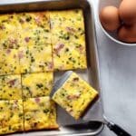 - Cool and serve: Remove from oven and let it cool slightly before cutting into squares. Serve each square on toasted and buttered English muffins for a complete breakfast sandwich.