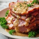 This Slowcooker Creamy Mustard Pulled Ham is a comforting and flavorful dish featuring tender shredded ham simmered in a rich and tangy mustard sauce. Perfect for a hearty family meal, this recipe uses a slow cooker to effortlessly produce juicy, melt-in-your-mouth pork infused with a honey-sweetened mustard glaze and finished with creamy sauce for an indulgent touch.