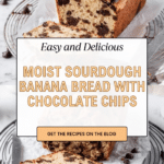 Keywords: sourdough discard banana bread, banana bread recipe, chocolate chip banana bread, easy banana bread, baking with sourdough, moist banana bread, pecan banana bread