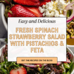 This Spinach Salad with Strawberries is a fresh, vibrant dish perfect for a light lunch or a colorful side. The combination of tender greens, sweet strawberries, crunchy pistachios, and tangy feta makes each bite delightful. Topped with a simple balsamic vinaigrette, it’s easy to prepare and full of flavor.