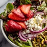 PrintSpinach Salad with Strawberries, Feta, and Pistachios Recipe