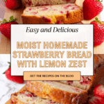 A moist and flavorful strawberry bread made with fresh diced strawberries folded into a tender batter. This loaf combines the bright, fruity taste of strawberries with a hint of lemon zest and vanilla, all baked to perfection for a beautiful and delicious quick bread perfect for breakfast or a sweet snack.
